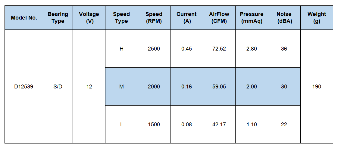 High speed 12Volt brushless axial fan adopts DC motor 125mmx125mmx39mm, It adopts double ball bearings rated at 67,000 hours allows the fans to be laid flat or stand upright.