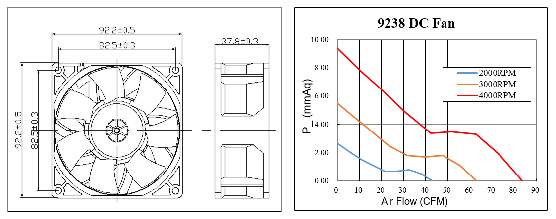 DC AXIAL FAN 92x92x38mm(3.62"x3.62"x1.5")